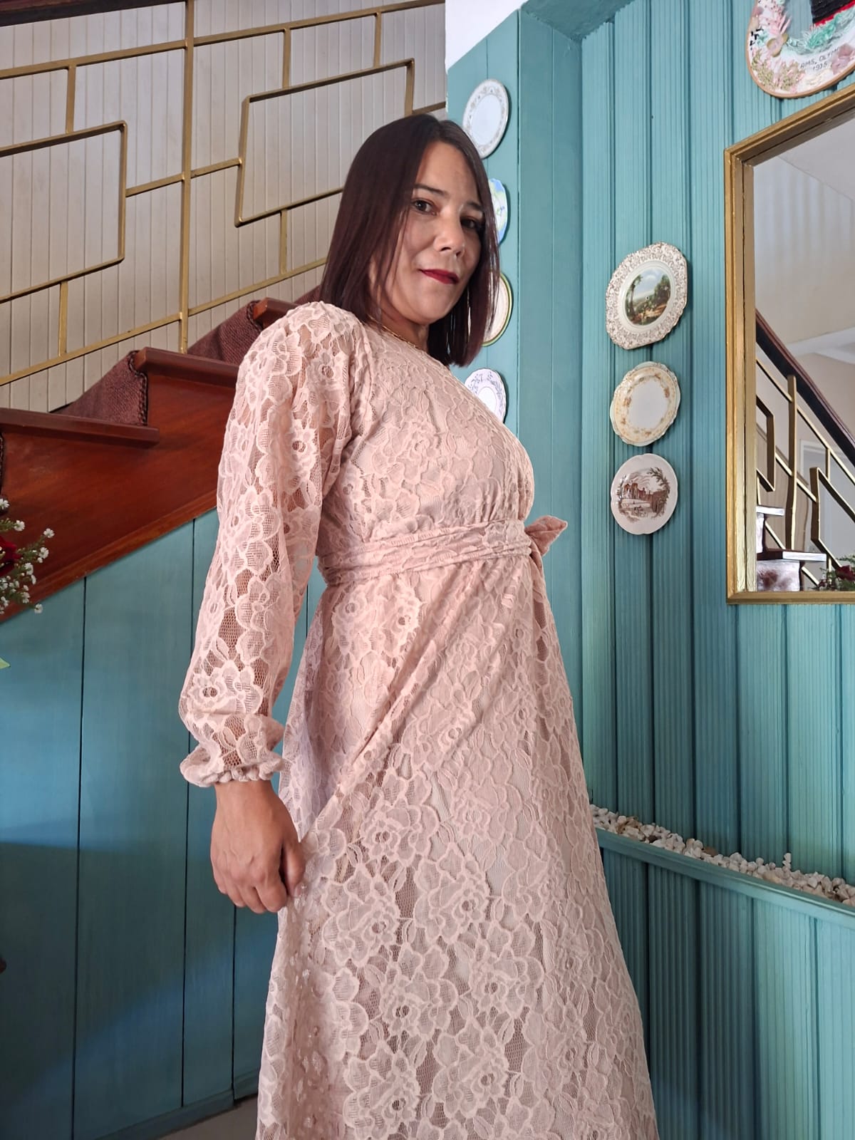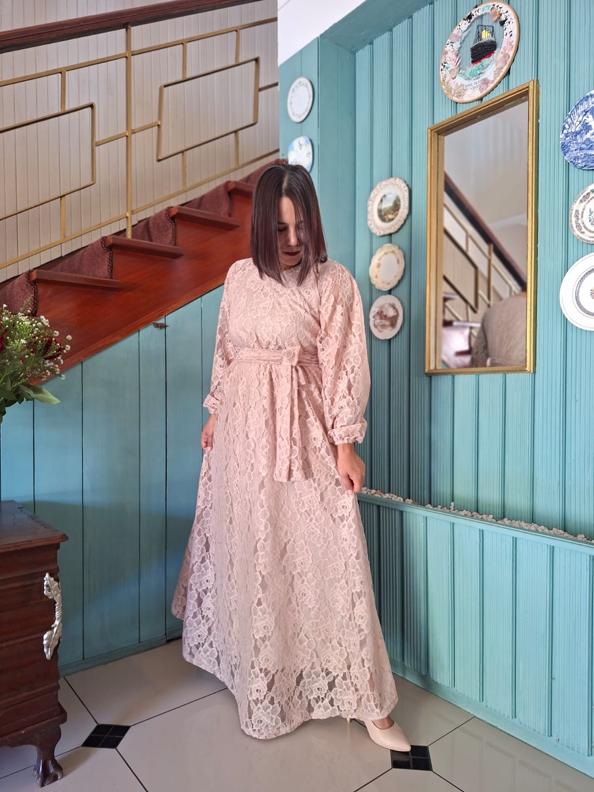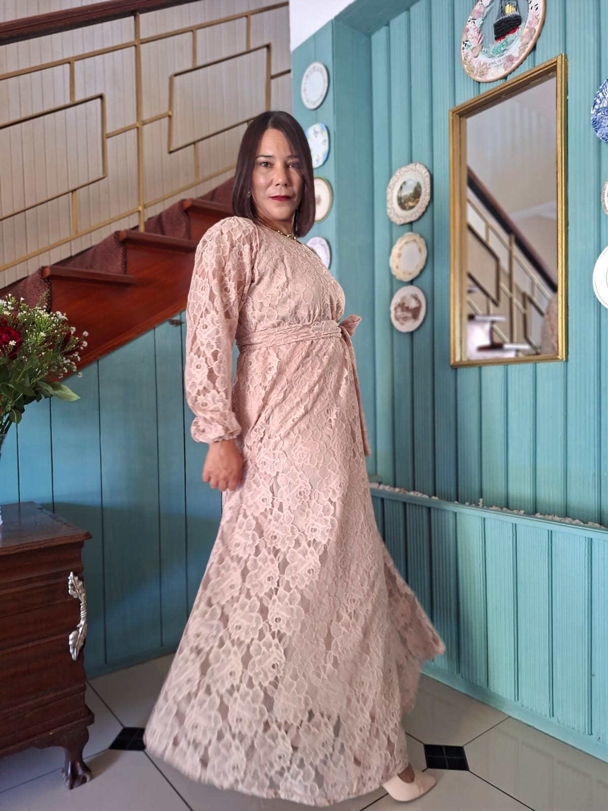 Beautiful beige lace Aline dress.