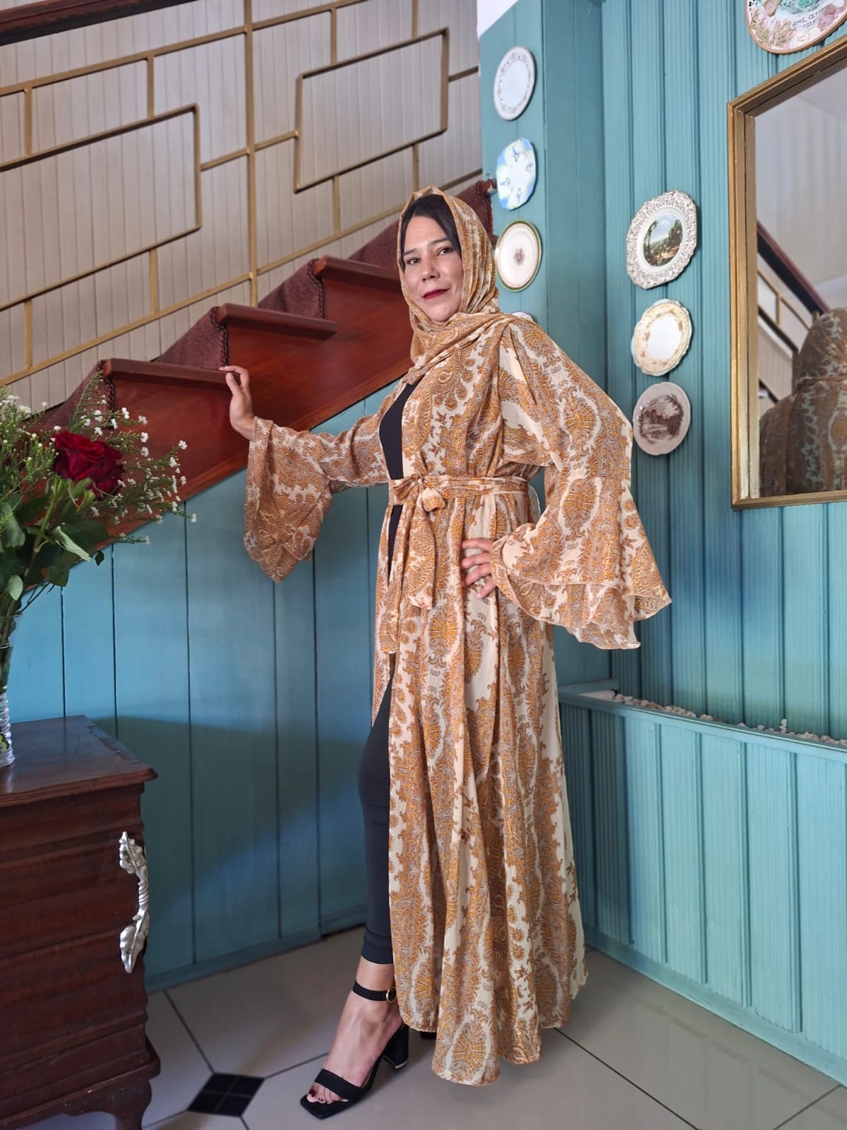 Shimmer Bell sleeve open kimono. matching scarf included