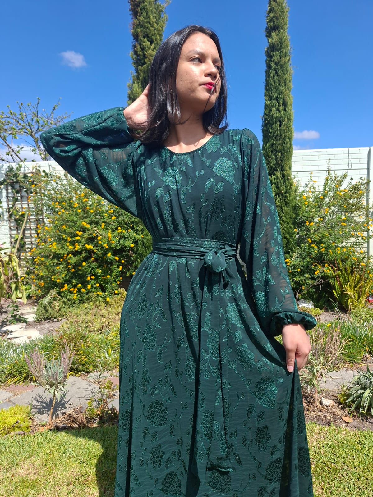 Green embossed georgette dresses.